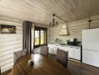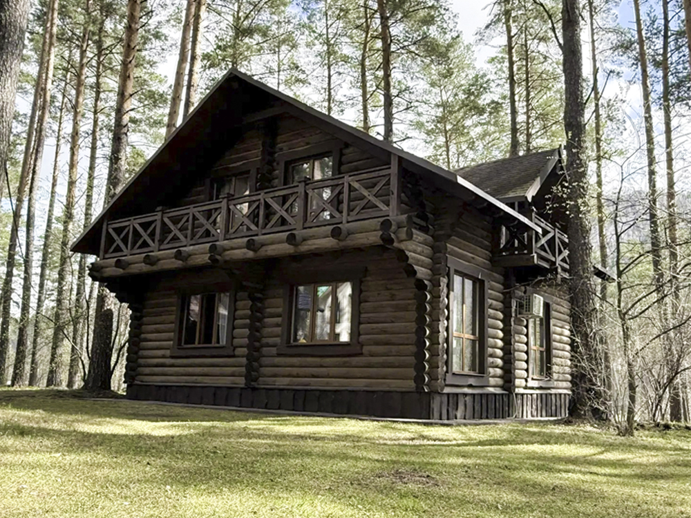 Охотничий дом — двухэтажный дом из натурального дерева с тремя спальнями и индивидуальными санитарными комнатами, просторной гостинной с камином и уютной кухней. Рассчитан на 6 основных и 2 дополнительных места. В доме есть все необходимое для комфортного пребывания семьи или компании.